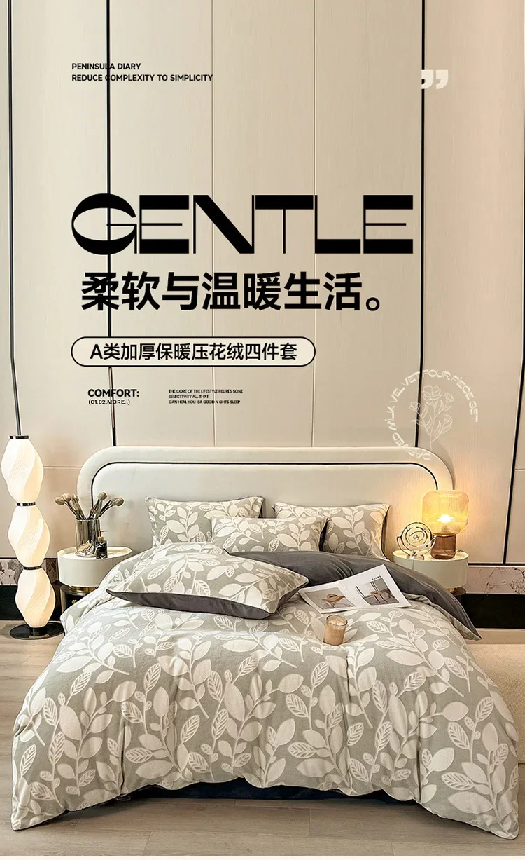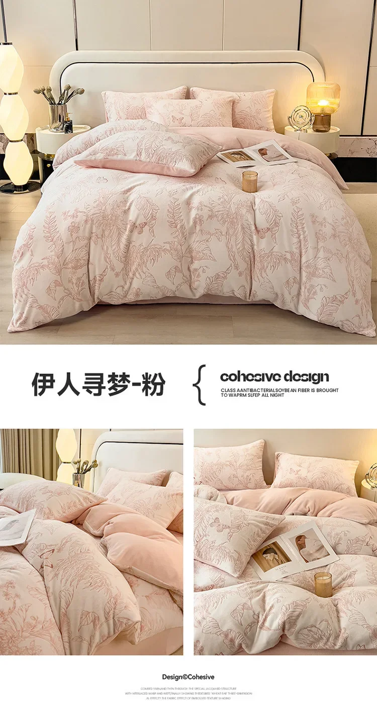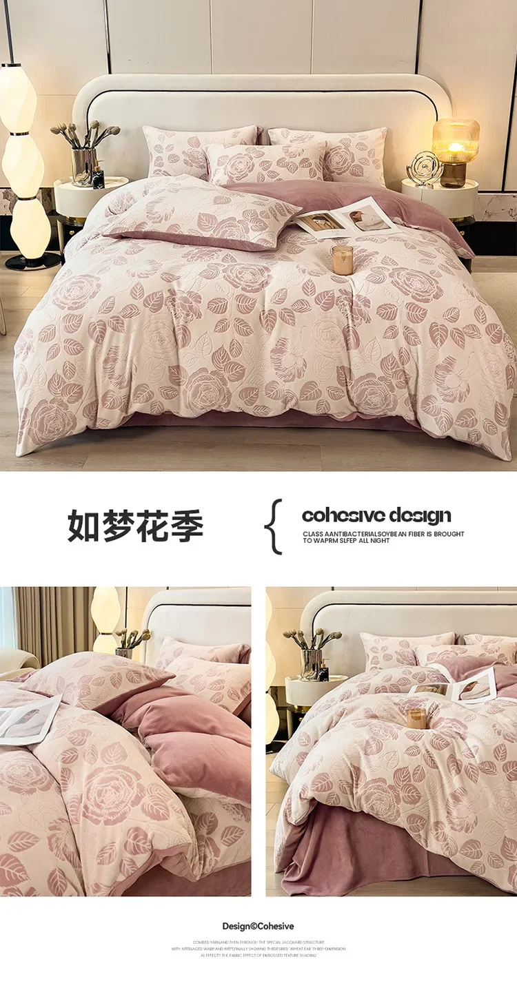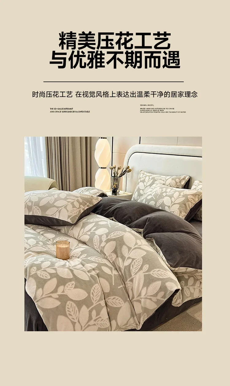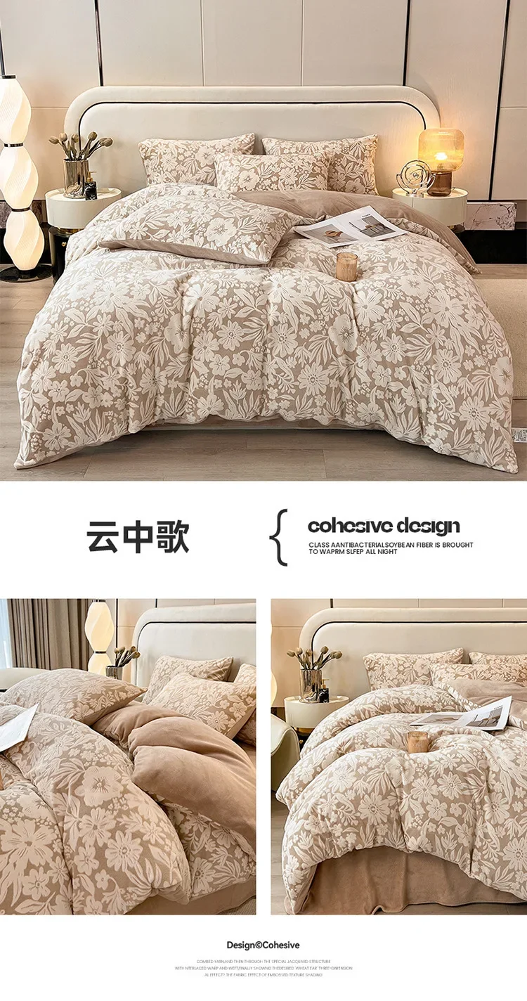 Four-piece Set Autumn and Winter Carved Coral Fleece Warm Quilt Cover Bedding