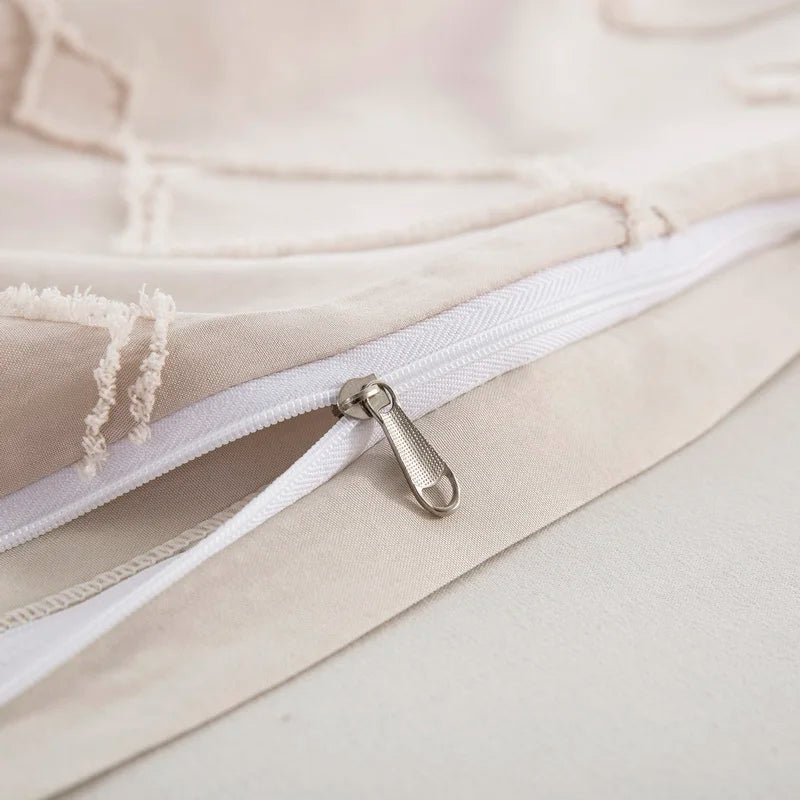 Beige Duvet Cover Full/Queen Size, Boho Tufted Microfiber Bedding Set for All Seasons, Embroidery Shabby Chic Comforter Cover