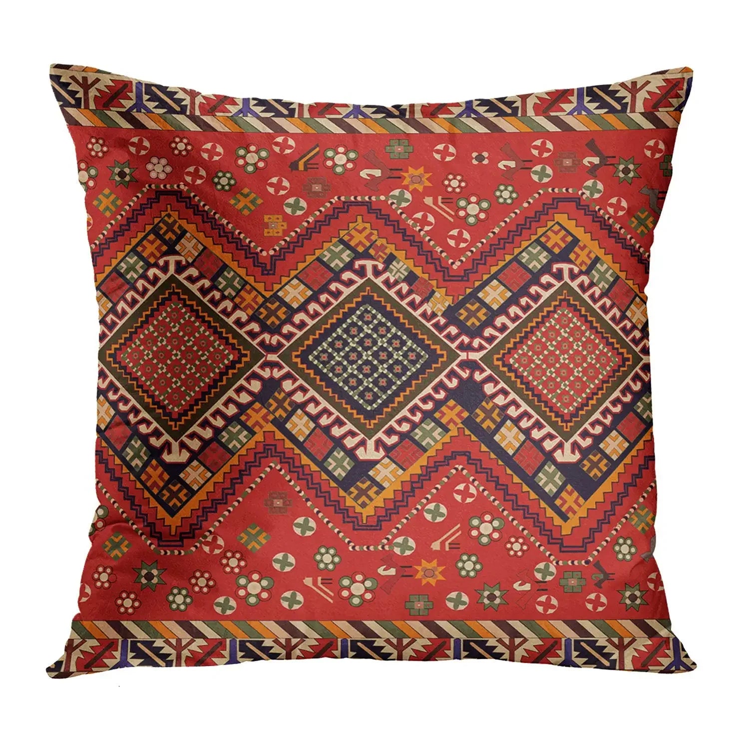 Red Moroccan ethnic style short plush pillowcase sofa cushion cover