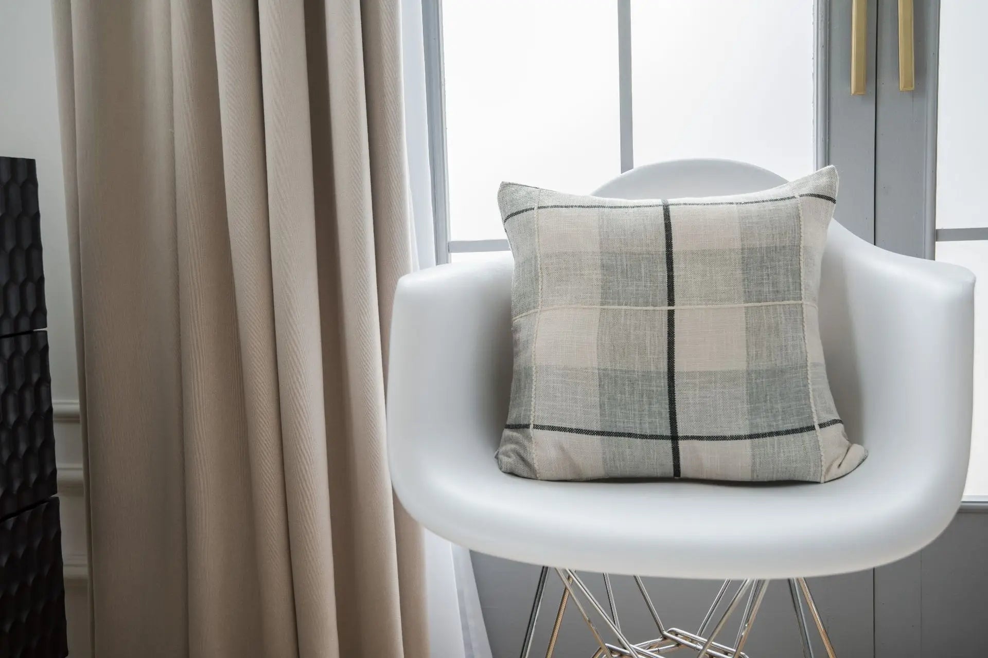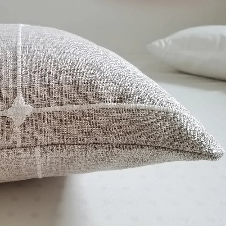 Simple Plaid Cushion Cover Brown Grey Embroidery Stripe Cotton Linen Pillow Cover